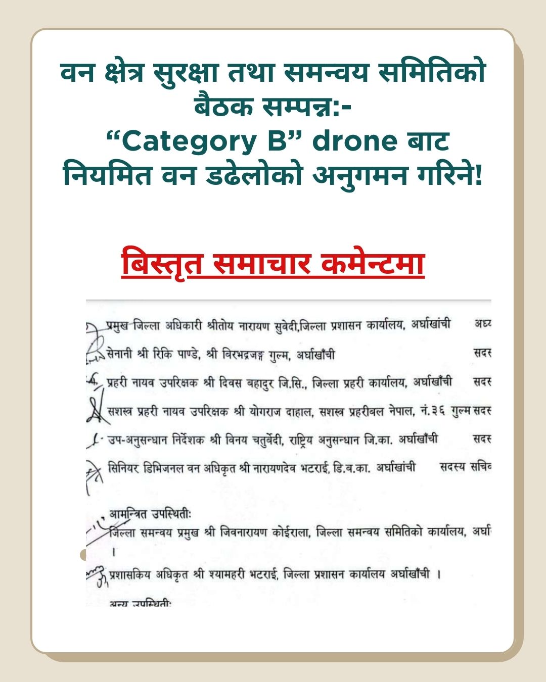 कार्यालयले यसै प्रयोजनका लागि क्याटागाेरी बि को ड्रोन व्यवस्थापन गरि प्रयोगमा ल्याएको छ ।